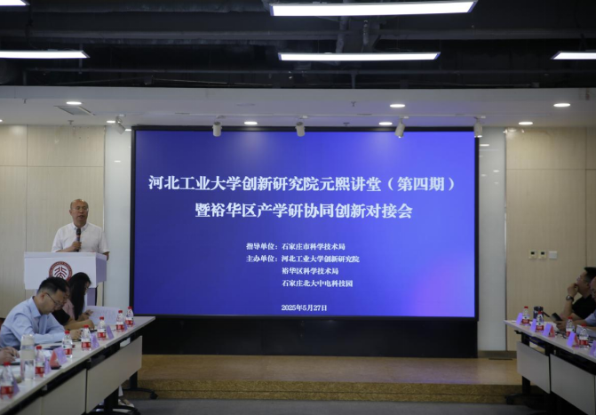 2025年5月27日,河北工业大学创新研究院元熙讲堂(第四期)暨裕华区产学研协同创新对接会在石家庄北大中电科技园成功举办。本次活动以“人工智能+”为主题,旨在探索政、媒、银、校、企深度融合的创新协同机制,推动AI赋能石家庄市主导产业高质量发展,助力企业转型升级。